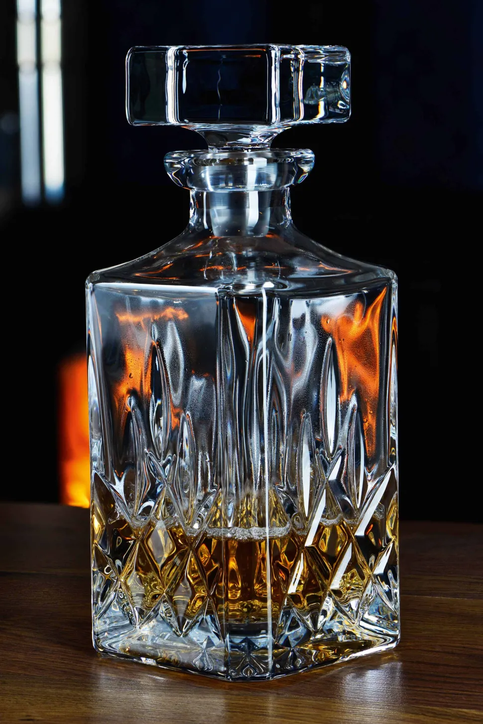 Mit einem Volumen von 750ml bietet die Karaffe ausreichend Platz für Ihren Lieblingswhisky. Sie hat eine quadratische Form und ist an allen Seiten ebenfalls mit einer feinen Optik versehen. Der Glasstopfen passt sich perfekt dem Karaffenhals an und lässt sich leicht greifen. Die quadratische Form des Karaffe spiegelt sich auch in dem Stopfen wieder. Die Karaffe verfügt ebenfalls über einen dicken Boden, welcher einen festen Stand garantiert.