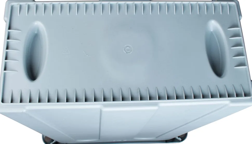 – zwei Griffmulden im Boden erleichtern das Greifen beim Ausschütten des Mülleimers