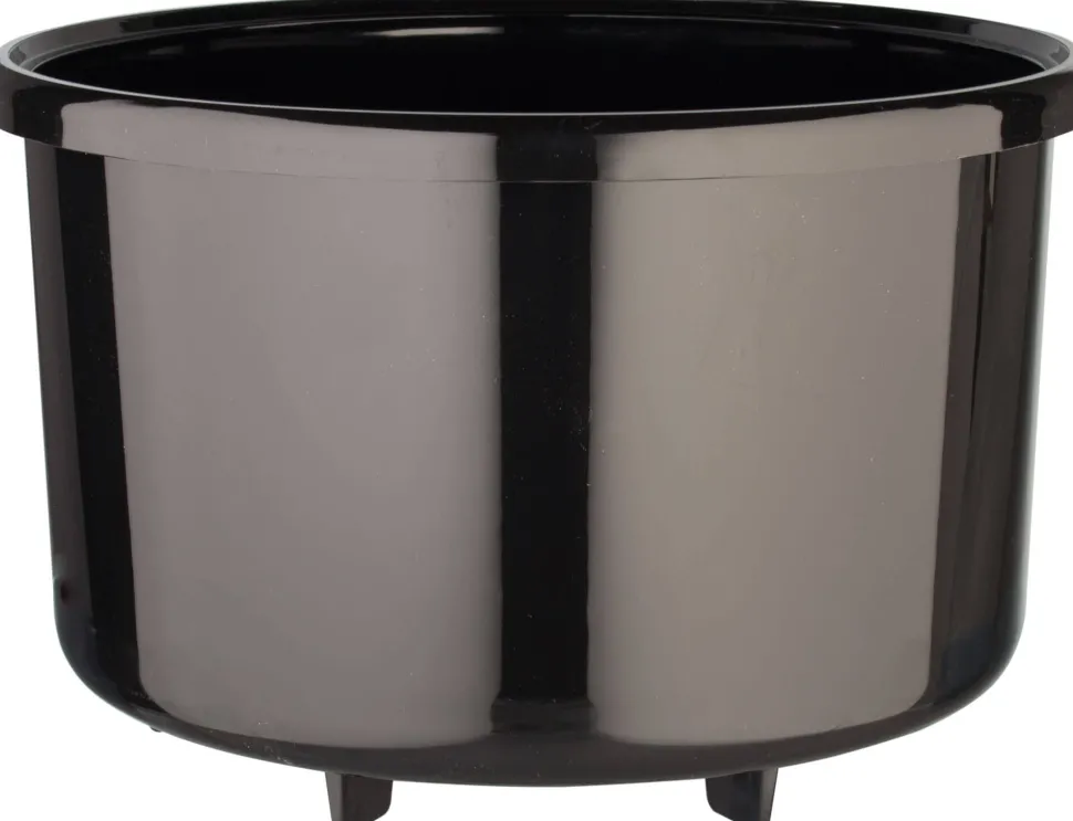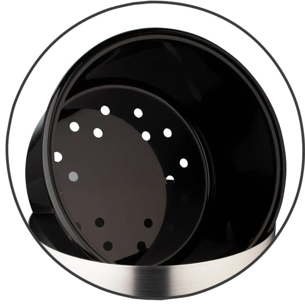 Der runde Einsatz besteht aus schwarzem ABS Kunststoff. Zwar kann der Eiseimer auch ohne den Abtropfbehälter verwendet werden, dann liegen die Eiswürfel aber im Schmelzwasser. Das wird durch den Abtropfeinsatz verhindert.