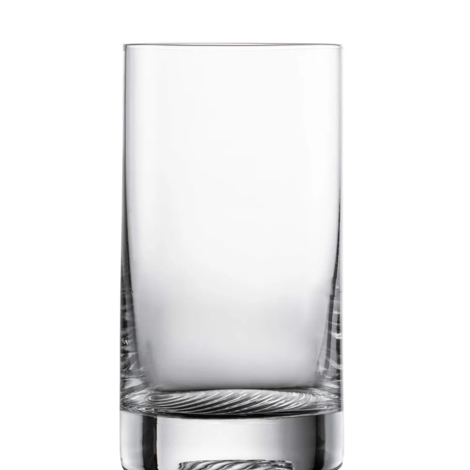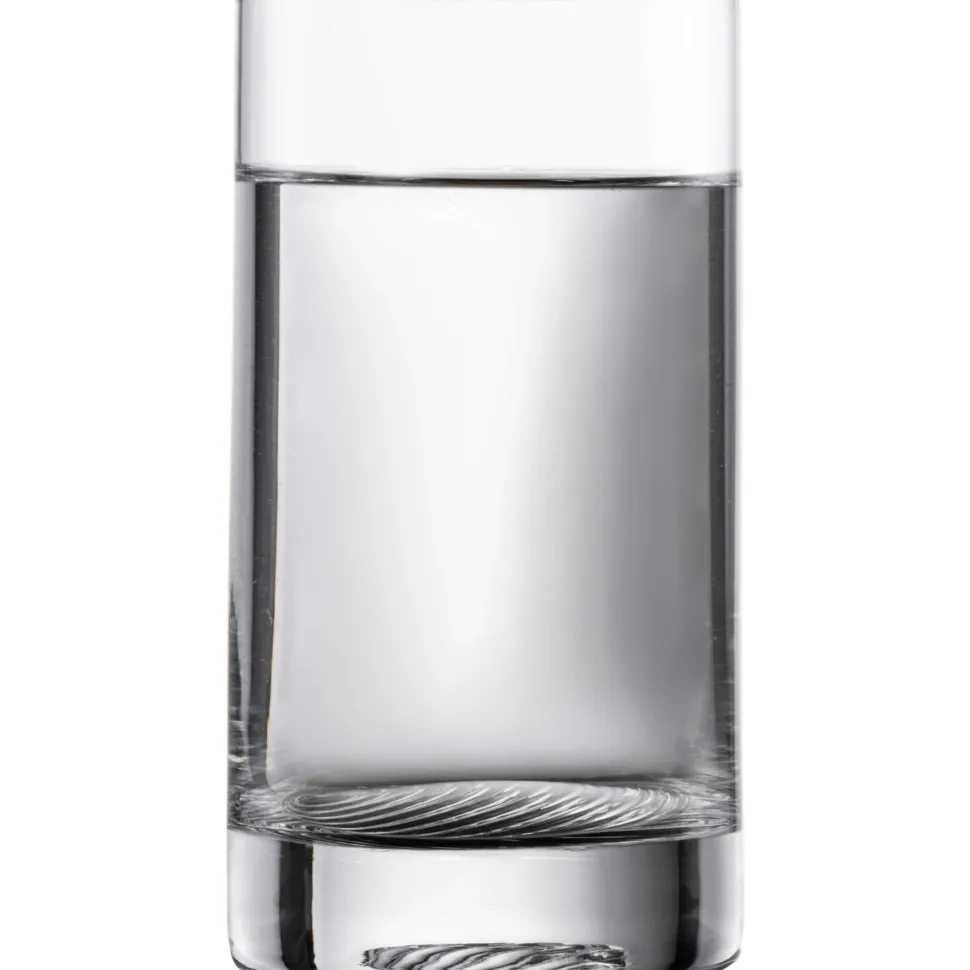 Zwiesel Glas bezeichnet die Volume Kollektion als „Barserie“ – und in der Tat ist auch dieses Allround Glas ein idealer Begleiter für die professionelle Gastronomie sowie auch die ambitionierte Home-Bar. Der Design-Clou des ansonsten schlichten Glases befindet sich am Glasboden. Dieser ist von unten mit einem einzigartigen Dekor verziert, welches aus runden Halbkreisen besteht, die von einem einzelnen Punkt auszugehen scheinen; wie Schallwellen oder die kleinen Wellen, welche ein Steinwurf auf der Wasseroberfläche hinterlässt.