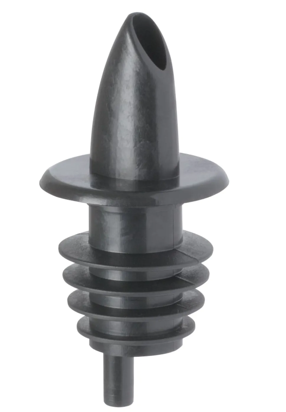 Der Ausgießer „Eco“ hat eine Länge von 6,5cm und einen maximalen Durchmesser am Flaschenhals von 3cm. Er ist aus einem Stück gefertigt und besteht aus Kunststoff. Der Kunststoff weist eine gute Elastizität auf, was einen häufigen Flaschenwechsel möglich macht. Die vier Lamellen haben verschiedene Durchmesser, daher passt der Ausgießer auf Flaschen mit einem Innendurchmesser von 16,5 bis 22,5mm. Der Ausgießer ist mit einem Luftloch versehen. Eine Reinigung in der Spülmaschine ist nicht vorgesehen.