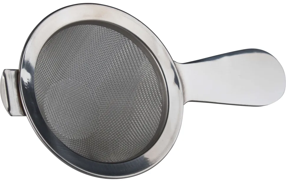 Der Strainer ist insgesamt 15cm lang, wobei der Stiel 8,5cm misst. Das Sieb hat am oberen Rand einen Durchmesser von 6,5cm und wird von dem 0,8cm breiten Edelstahlring gehalten. Es verläuft konisch, ist aber nicht spitz, sondern hat einen flachen Boden. Ein breiter Haken sorgt zusammen mit dem Griff dafür, dass das Sieb gut auf dem Glas aufliegt.