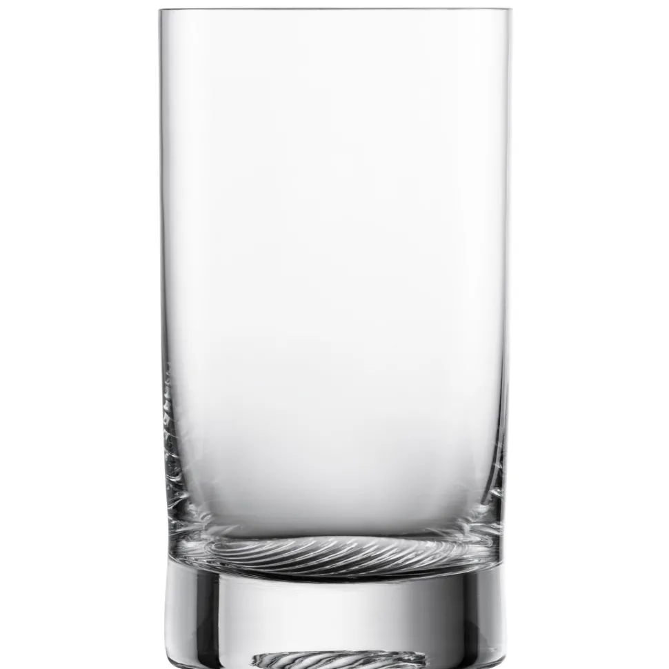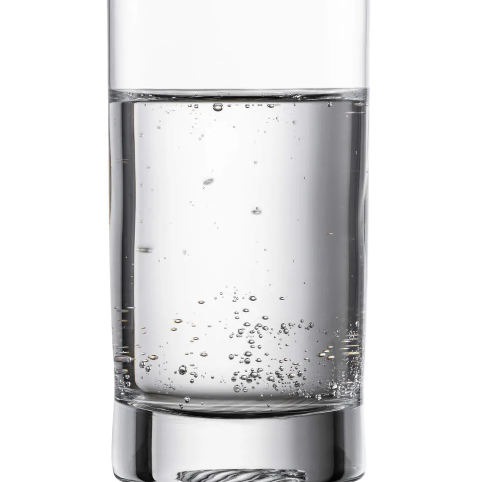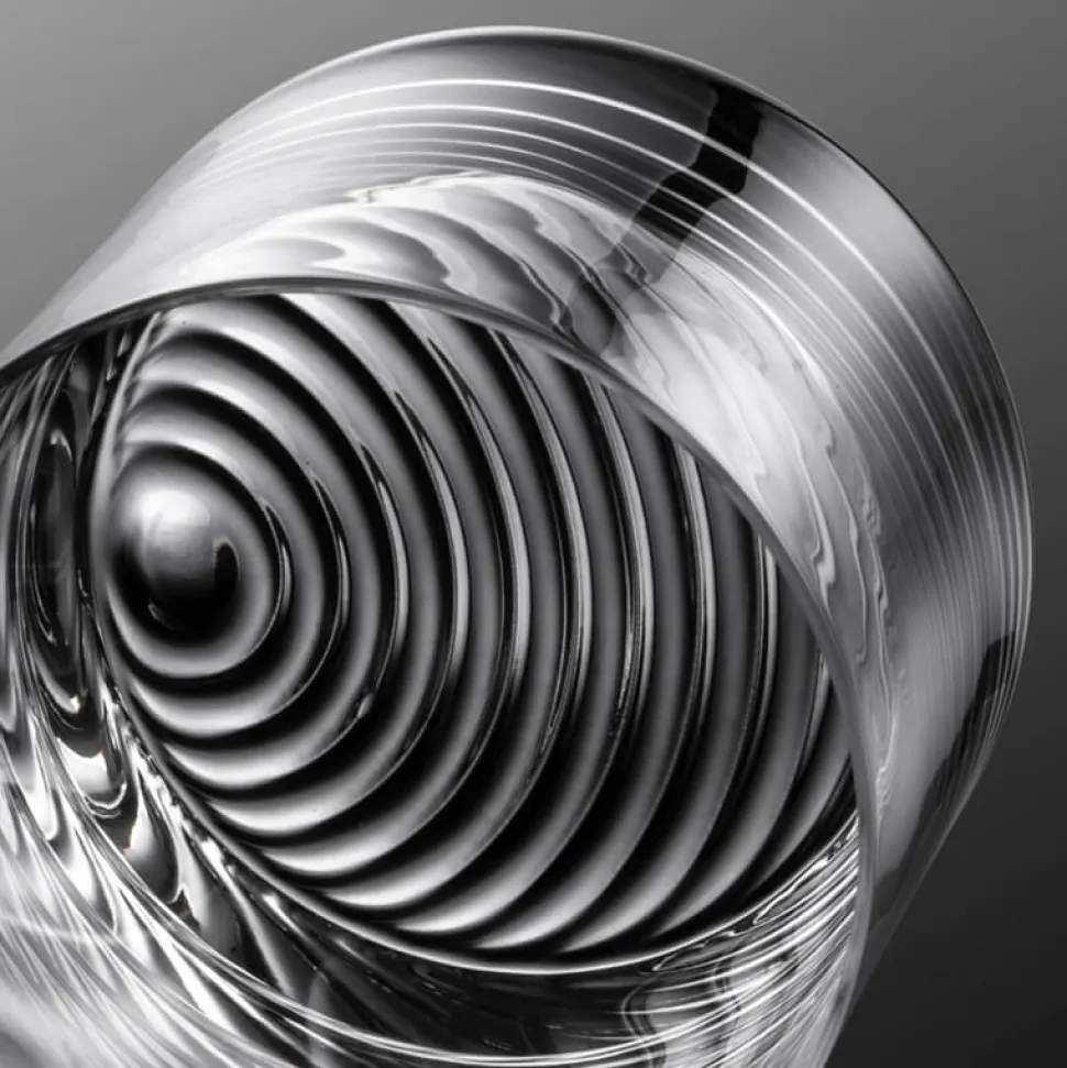Wie der Rest der Volume Serie ist das Glas bis auf das Bodeneis vollkommen schlicht gehalten – dieses ist dafür von der Unterseite mit einem einzigartigen Design geprägt: Ausgehend von einem Punkt zieht sich eine Reihe von Halbkreisen darüber. Diese Struktur erinnert an Schallwellen oder die wortwörtlichen Wellen nach einem Steinwurf in den See und lädt beim Halten des Becherglases zum Herumspielen mit den Fingern ein.