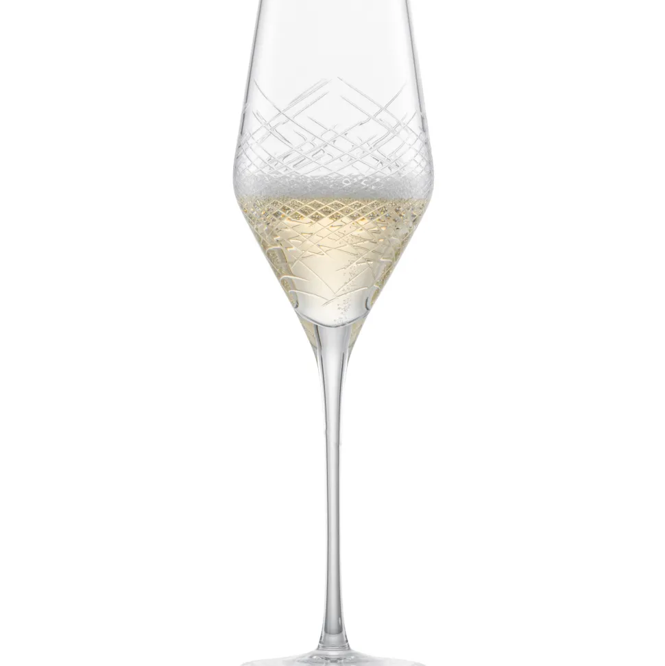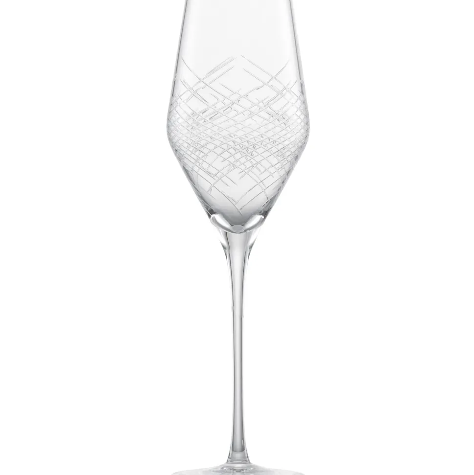Von seiner Silhouette her ähnelt das Champagnerglas stark den Weingläsern der Linie, wobei sein Kelch etwas schlanker geformt ist. Dies ist essentiell, um die Kohlensäure so lange wie möglich im sprudelnden Edelwein erhalten zu können. Ein Moussierpunkt am Kelchboden sorgt zusätzlich dafür, dass die Perlage geordnet aufsteigt.