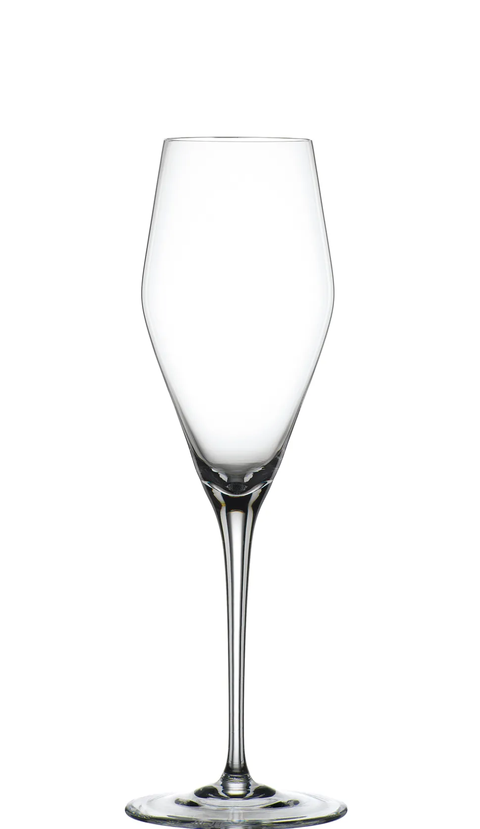 Das Schaumweinglas mit einem Volumen von 280ml sorgt mit seinem hohen Kelch für ein ausgewogenes Spiel der Kohlensäure und lässt diese durch die verjüngte Mundöffnung an der Zungenspitze prickeln.