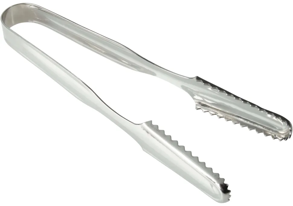 Viele Drinks und Cocktails müssen einfach mit Eis serviert werden. Die langen Greifflächen dieser Eiszange aus Edelstahl sind mit Zacken versehen, damit die Eiswürfel sicher gehalten werden können.