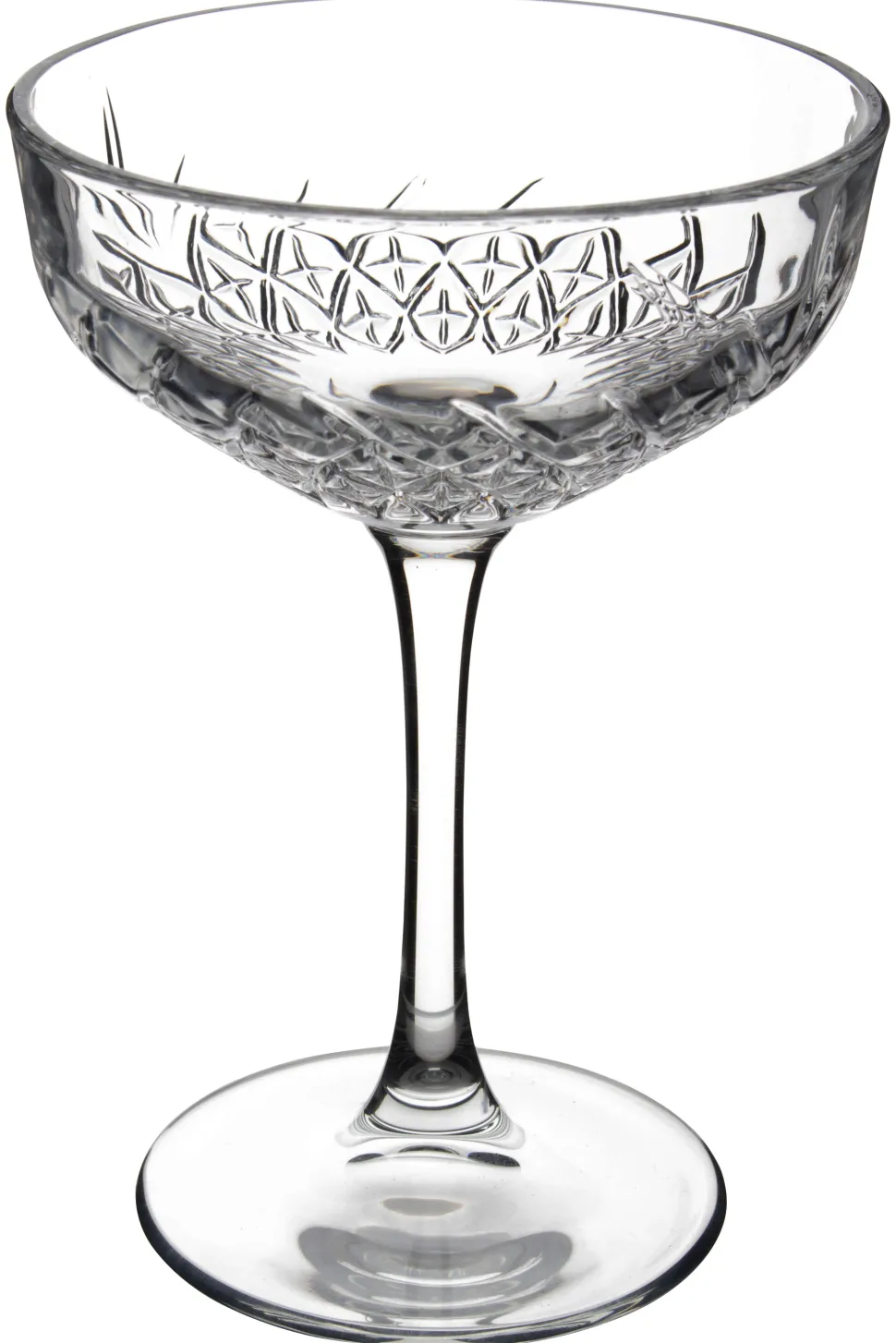 Servieren Sie klassische old-school-Cocktails oder brandaktuelle Drinks gleichermaßen in diesem schicken Coupette-Glas!
