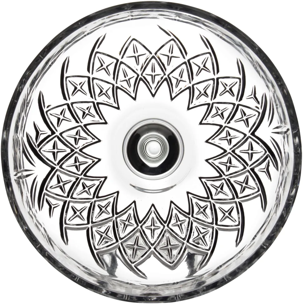 Oberfläche: Schliffdekoration (rauten- u. kreuzförmig); glatter Stiel