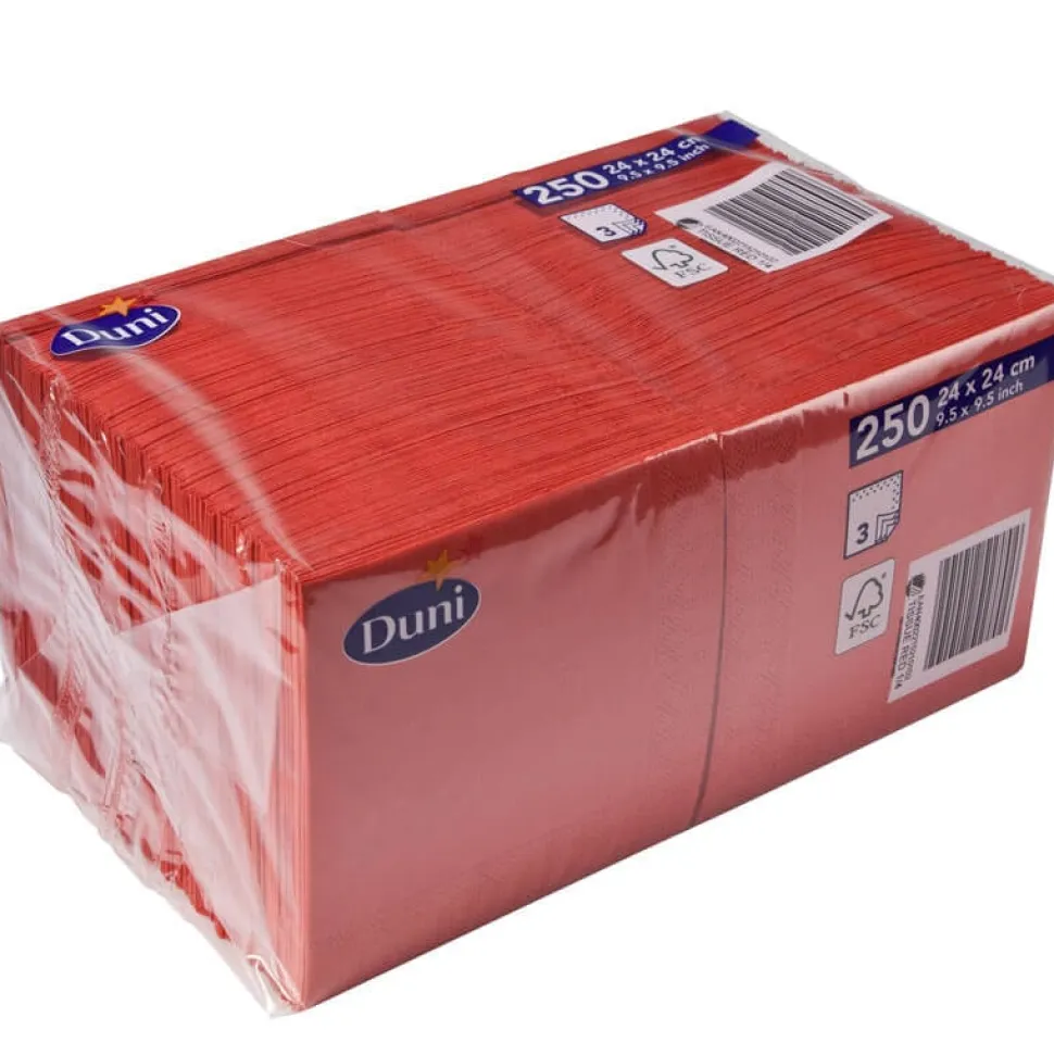 Produktdaten für Cocktailservietten Duni, Zellstoff, 3-lag., 24x24cm – rot (250 Stk.)