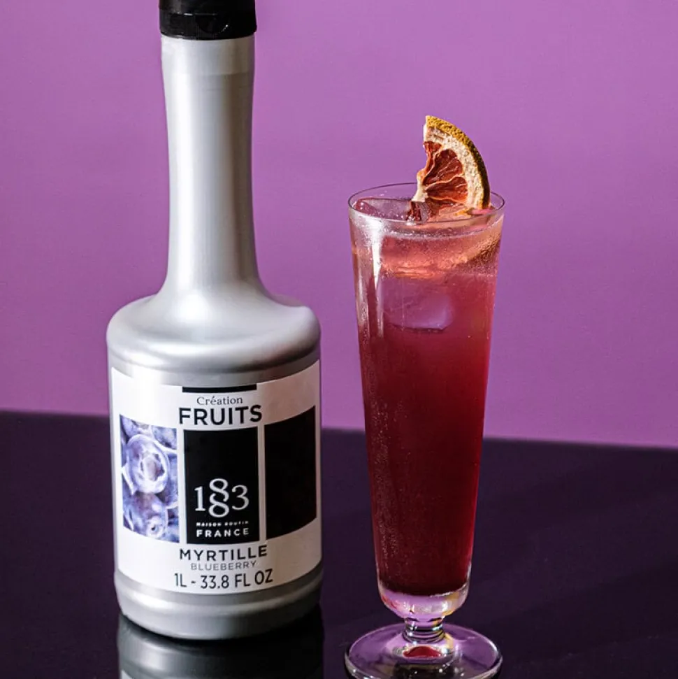 Zaubern Sie mit dem 1883 Création Fruits Blaubeer Fruchtpüree Mix zum Beispiel diese Variante des Klassikers Cosmopolitan: den Blueberry Cosmo.