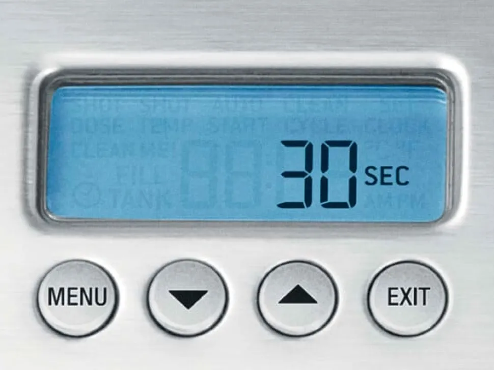 Die Espresso-Maschine ist mit einer Vielzahl an Funktionen ausgestattet, welche auf dem LCD-Display angezeigt werden. So können Sie selber Ihre gewünschte Wassertemperatur (zwischen 86-96°C), die Wassermenge (1 oder 2 Tassen) und die Dauer der Extraktion einstellen. Weiterhin ist die Maschine mit einem Auto-Start-Timer ausgestattet, sodass die Maschine je nach Einstellung vorheizt und Sie so gleich Kaffee brühen können. Ebenfalls gehört ein Reinigungsprogramm und die Dauer und Leistung der Vorbrühfunktion zu den integrierten und einstellbaren Funktionen.