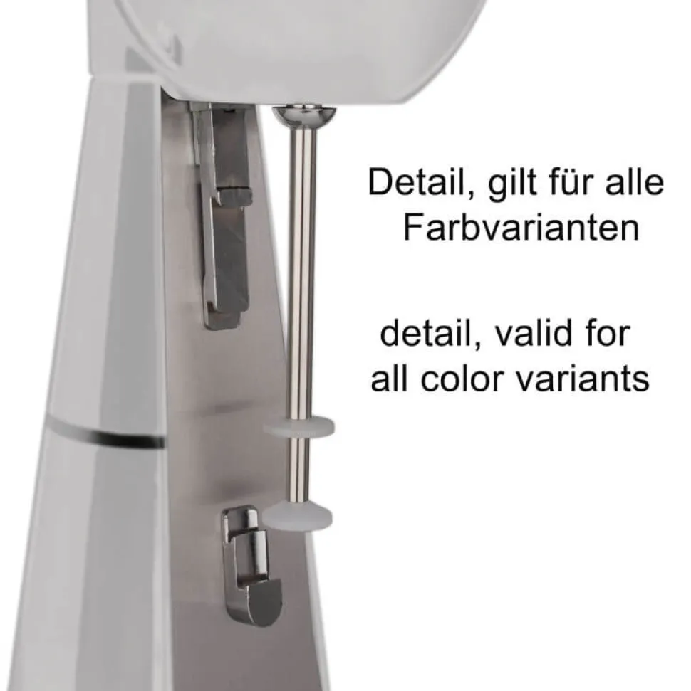 Der Drink Mixer besteht aus hochwertigem Aluminium und Edelstahl mit Spindeln aus lebensmittelechtem Kunststoff. Zum Lieferumfang gehört auch ein 900ml Edelstahlbecher. Dank der durchdachten Halterung können Sie aber auch eigene Becher verwenden. Dafür stehen vier Einhängepositionen zur Verfügung – für Becher von 11-18cm. Der 350 Watt starke Motor sowie andere technische Teile stammen aus italienischer Produktion und der Mixer ist entsprechend CE-zertifiziert.