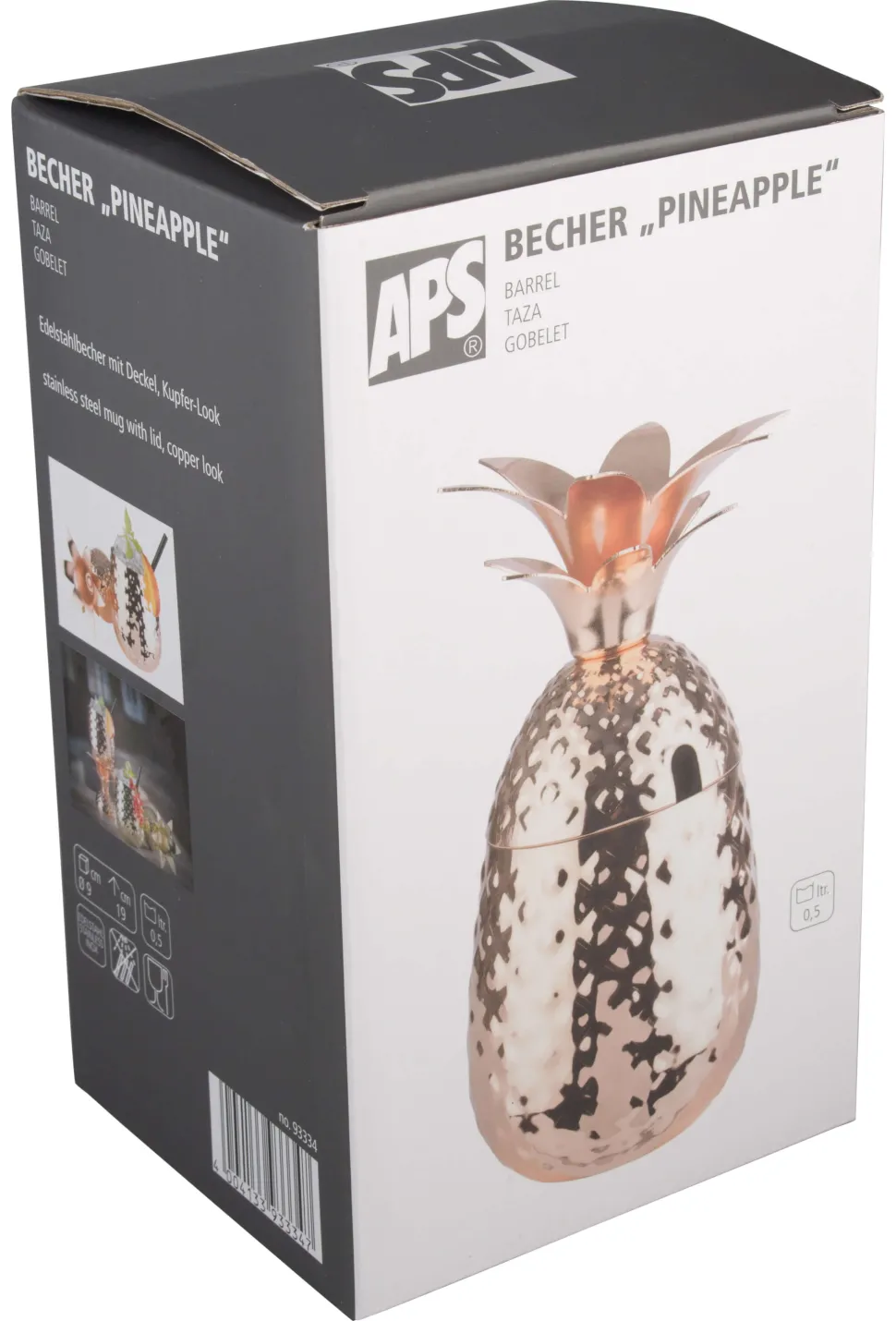 Produktdaten für Edelstahlbecher „Ananas“ mit Deckel, Kupfer-Look – 500ml