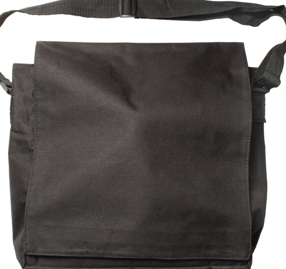 Ein einfacher, in der Länge verstellbarer Schulterriemen sorgt für guten Sitz auf Ihrer Schulter. Die schwarze Tasche schließt mit einem Klettverschluss und lässt sich durch 2 Reißverschlüsse an den Seiten komplett öffnen.