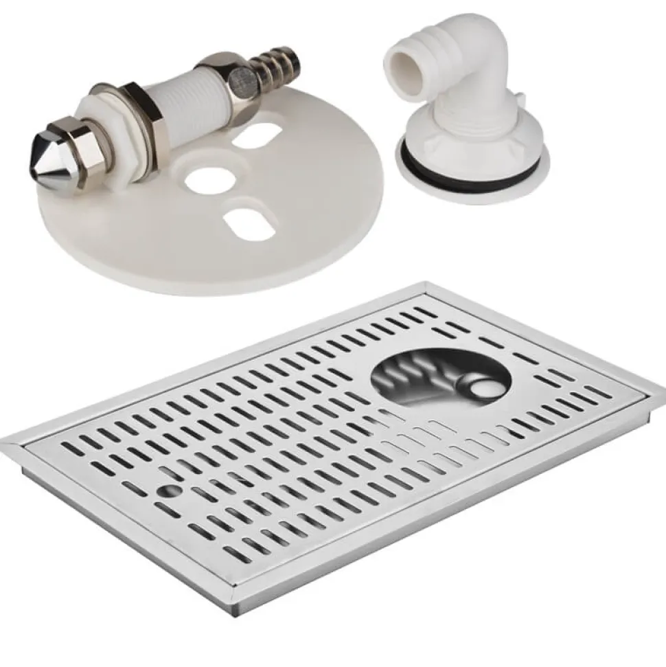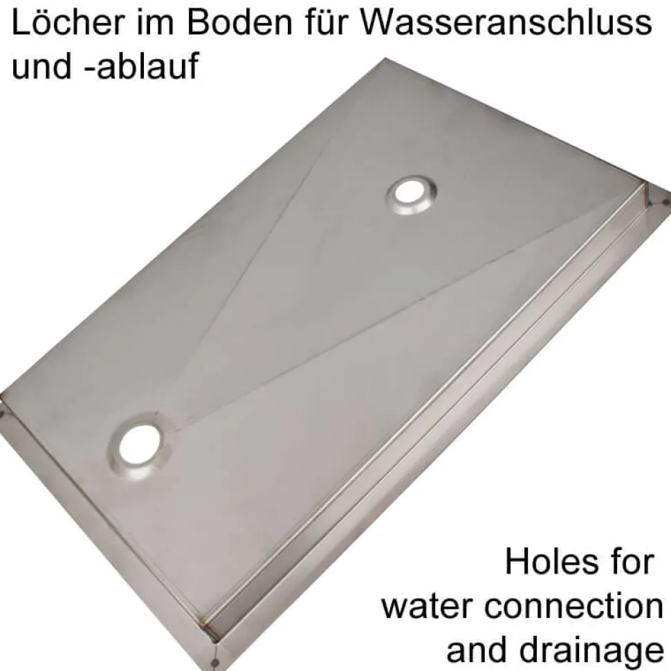 Das Tropfblech kann aus seiner Wanne herausgenommen werden um diese am Abend zu reinigen. Das Tropfblech und die Auffangschale sind aus Edelstahl gefertigt, die weiße Duschplatte ist aus Kunststoff. Die Lieferung beinhaltet die Duschvorrichtung inkl. Duschplatte. Zu- und Ablaufschläuche sind nicht enthalten.