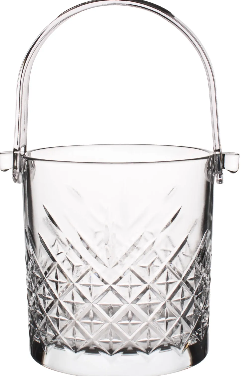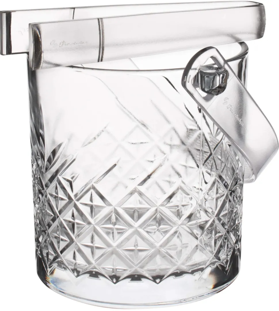 Der gläserne Eiswürfeleimer wird über einen Bügel aus Kunststoff getragen. Da dieser flexibel ist, kann er durch sanftes Aufbiegen zu Reinigungszwecken abgenommen werden. Der Behälter hat ein Volumen von 1,0 Litern. Setzen Sie mit diesem „Timeless“ Eiseimer ein einheitliches Design in Ihren Räumen um und kombinieren Sie ihn mit weiteren „Timeless“ Gläsern für den Gästebereich.