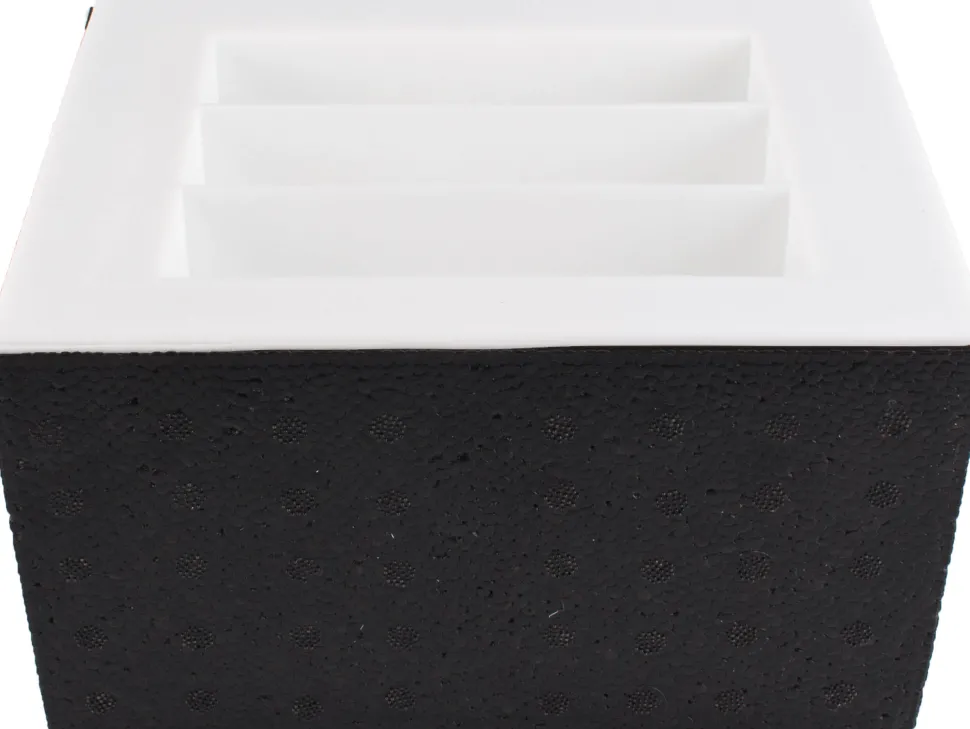 Das Geheimnis völlig durchsichtiger Eiswürfel liegt im Richtungsgefrieren. Dabei werden die Eisstäbe stets von oben nach unten durchgefroren und sind von den Seiten durch die Styroporbox isoliert. Unreinheiten im Wasser gelangen dann durch Löcher in der Form in ein Auffangbecken.