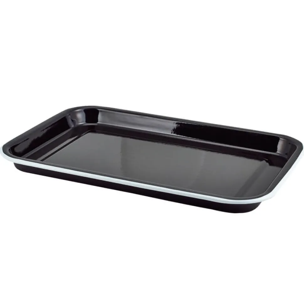 Produktdaten für Emaille-Serviertablett, schwarz mit weißem Rand – 33,5×23,5×2,2cm