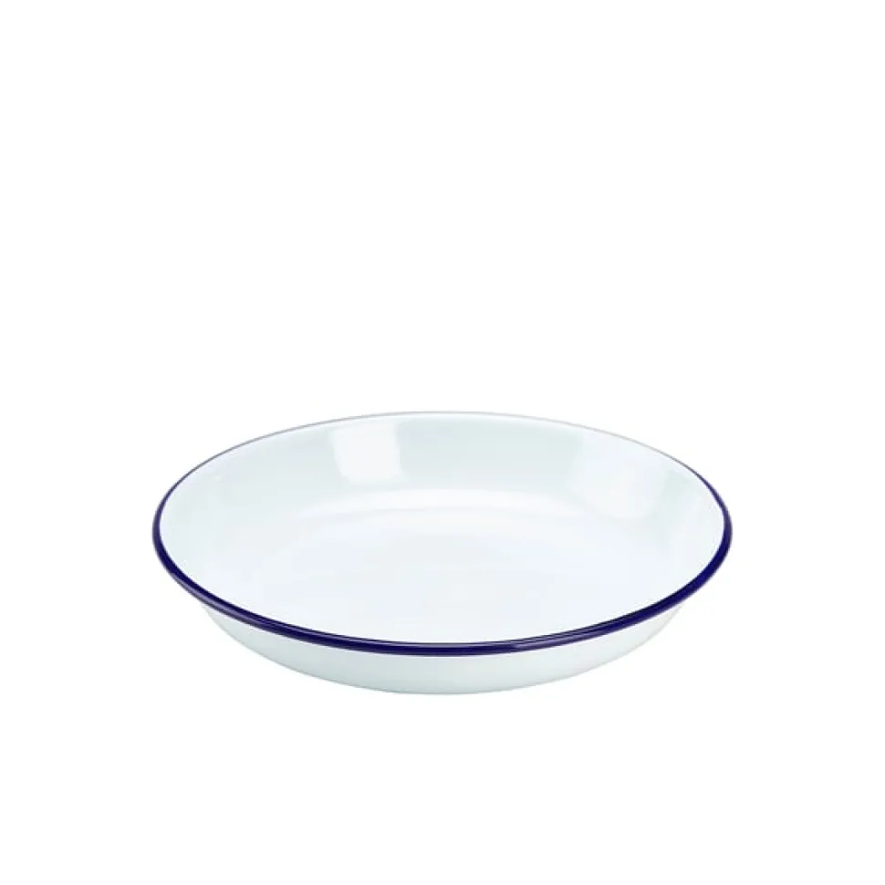 Produktdaten für Emaille-Teller tief / Pastateller, weiß mit blauem Rand – 22cm