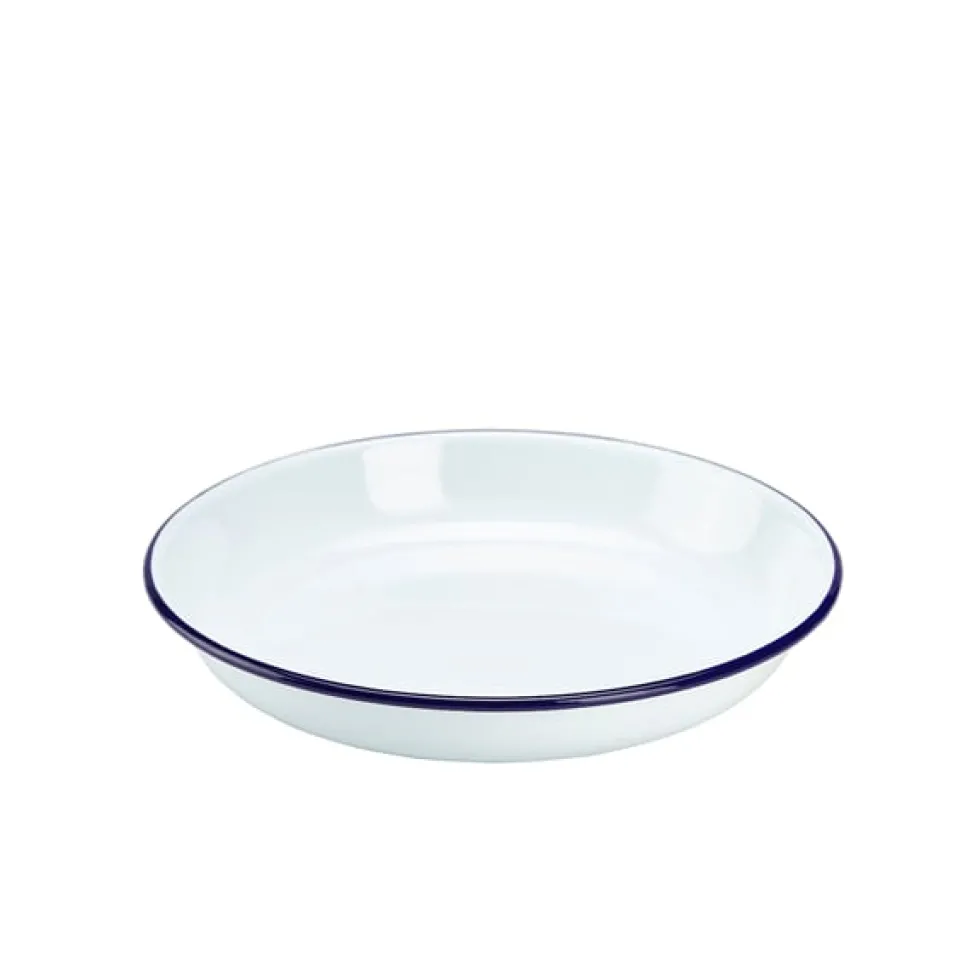 Produktdaten für Emaille-Teller tief / Pastateller, weiß mit blauem Rand – 24cm