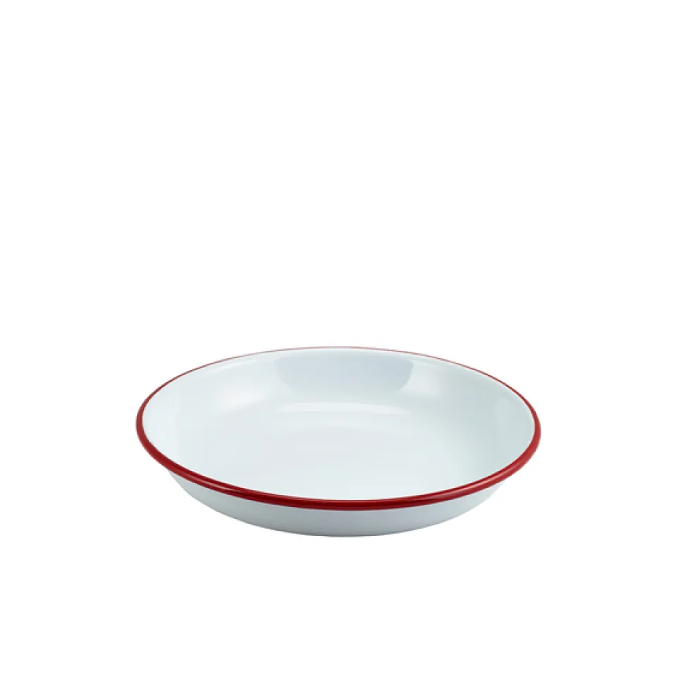 Produktdaten für Emaille-Teller tief / Pastateller, weiß mit rotem Rand – 20cm