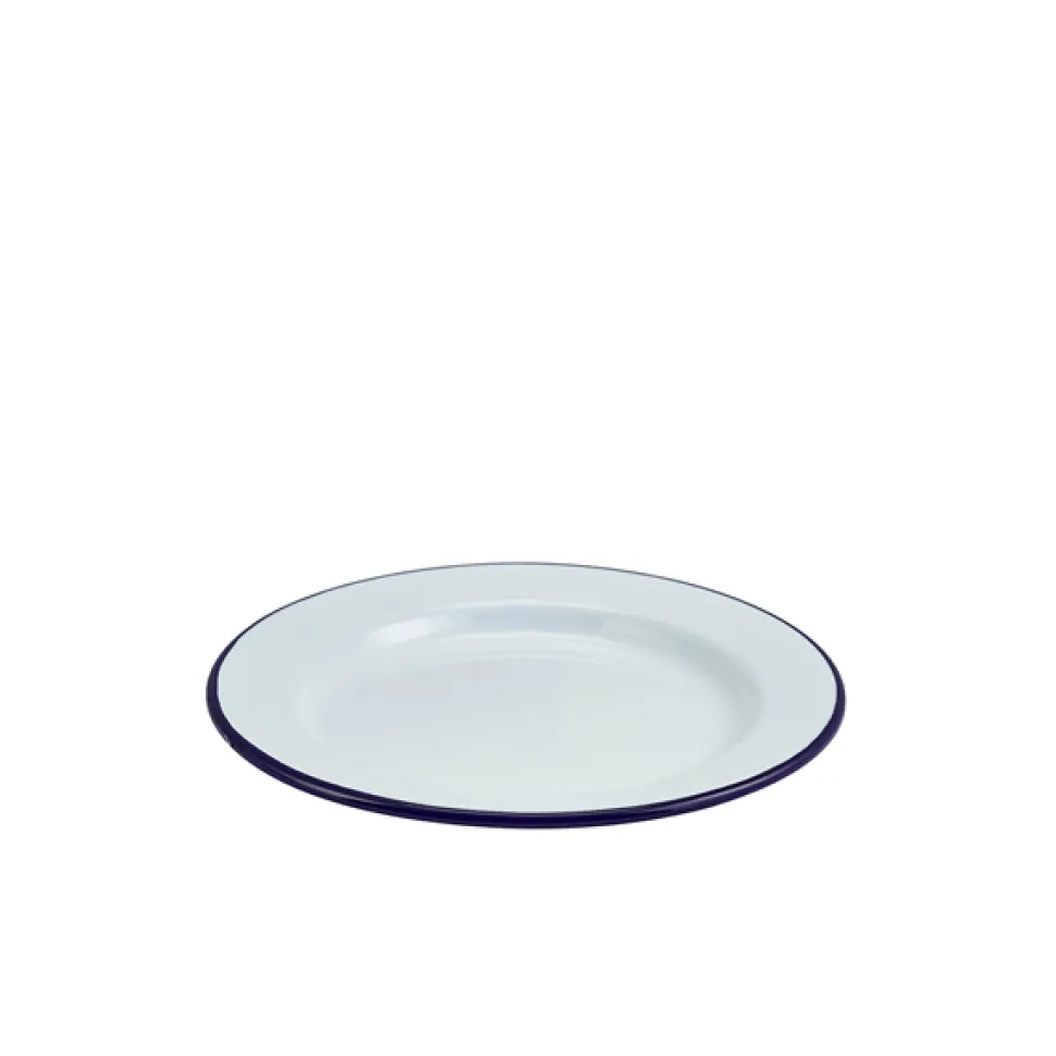 Produktdaten für Emaille-Teller, weiß mit blauem Rand – 20cm