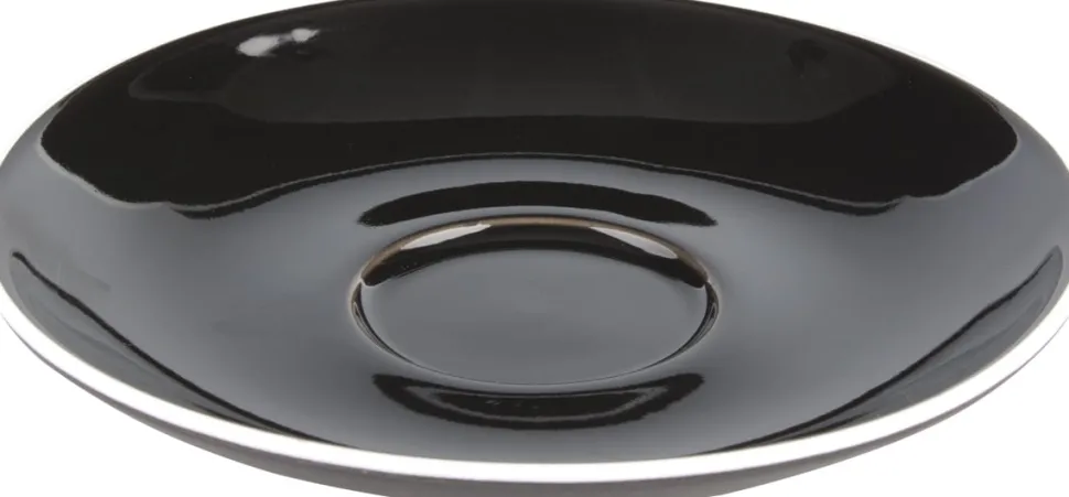 Die passenden Untertassen sind fast komplett schwarz glänzend. Nur ein schmaler weißer Streifen zieht sich um den Rand.
