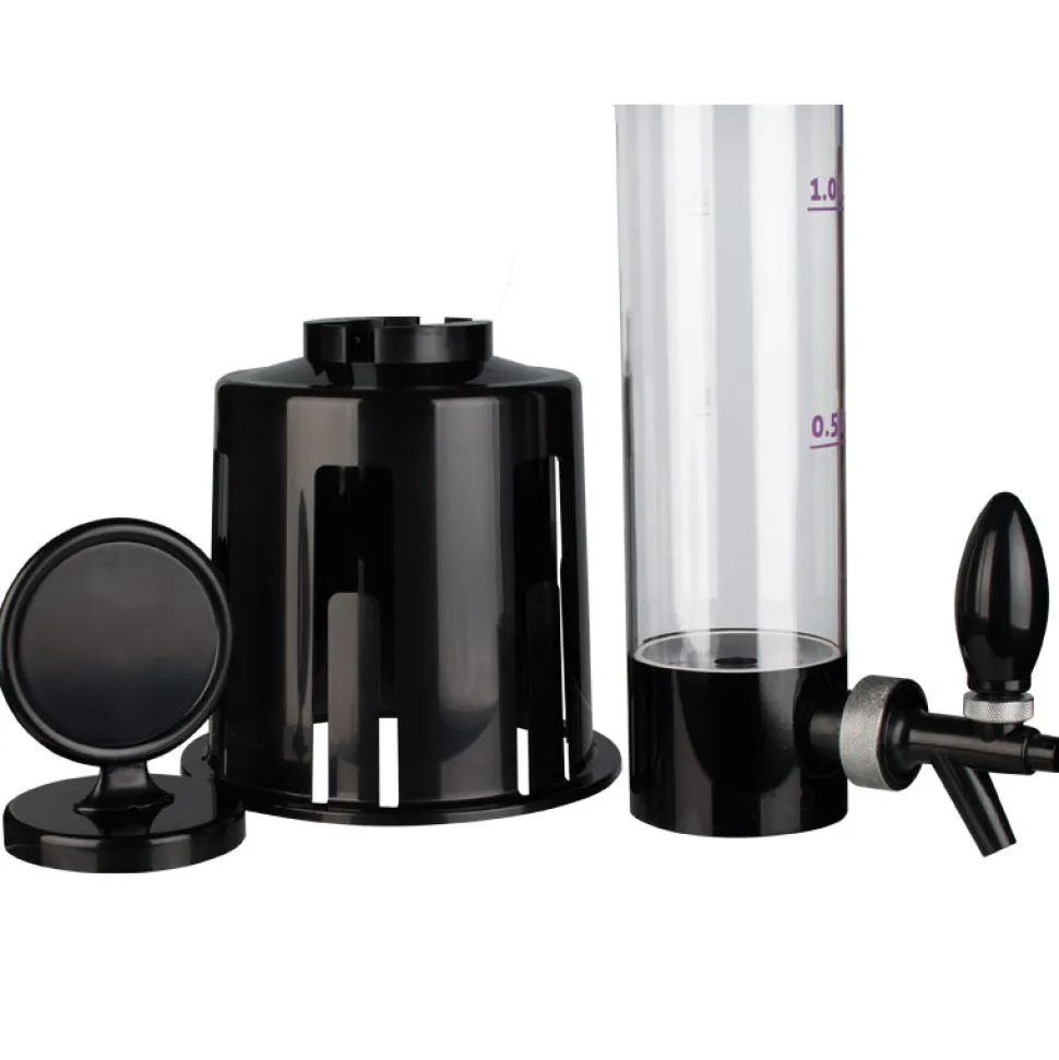 Insgesamt ist die Biersäule 96cm hoch. Die Höhe setzt sich zusammen aus dem schwarzen Sockel, der durchsichtigen Röhre mit Skala und einem schwarzen Deckel mit Medaillon. Alle Teile können einfach auseinandergenommen und gereinigt werden. Befüllt wird die Säule von oben. Unten befindet sich der Zapfhahn aus Kunststoff.