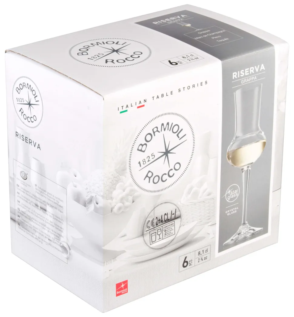 Produktdaten für Grappaglas Riserva, Bormioli Rocco – 80ml, 2+4cl Eiche (6 Stk.)
