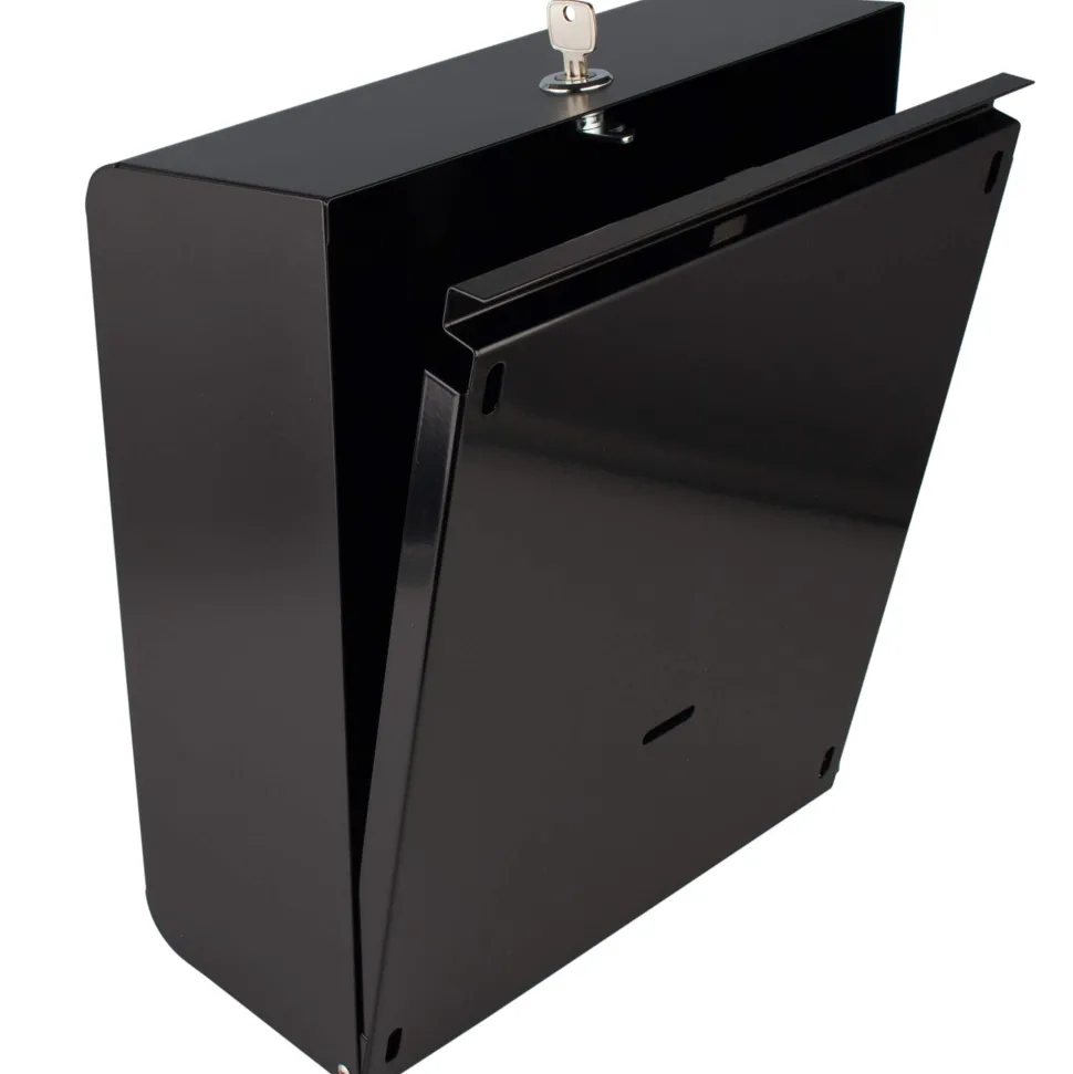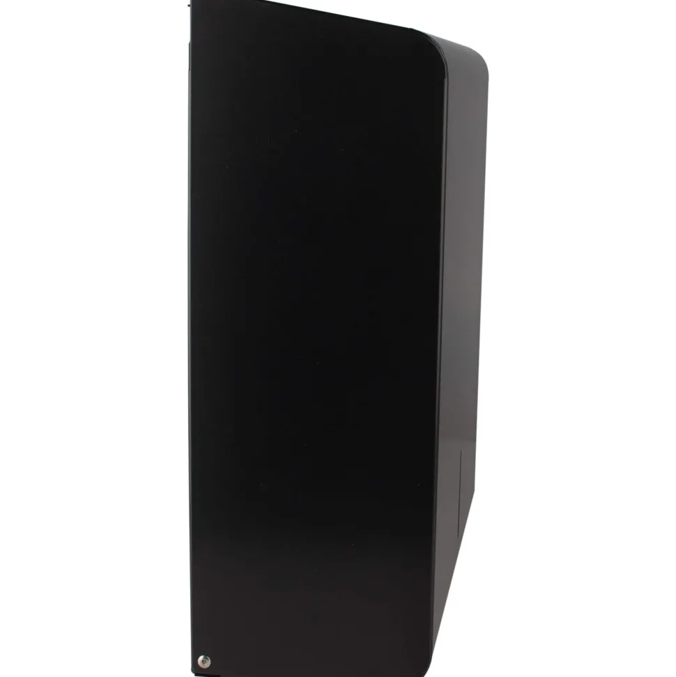Das Gehäuse des schwarzen Handtuchspenders besteht aus Edelstahl und ist am oberen Deckel mit einem Schlüssel verschließbar. So wird ein hygienisches Aufbewahren der Handtücher gewährleistet. Ein schmales Schauglas im unteren Drittel dient dazu, den Papierstand mit einem schnellen Blick zu überprüfen. In Waschräumen dunkler Bars und Restaurants wird dieser Handtuchspender zu einem integralen Design-Bestandteil. Zusammen mit dem Seifenspender Art-Nr. 9402 oder schwarzen Keramikwaschbecken wird das moderne Innendesign auch in den Waschräumen vollständig.