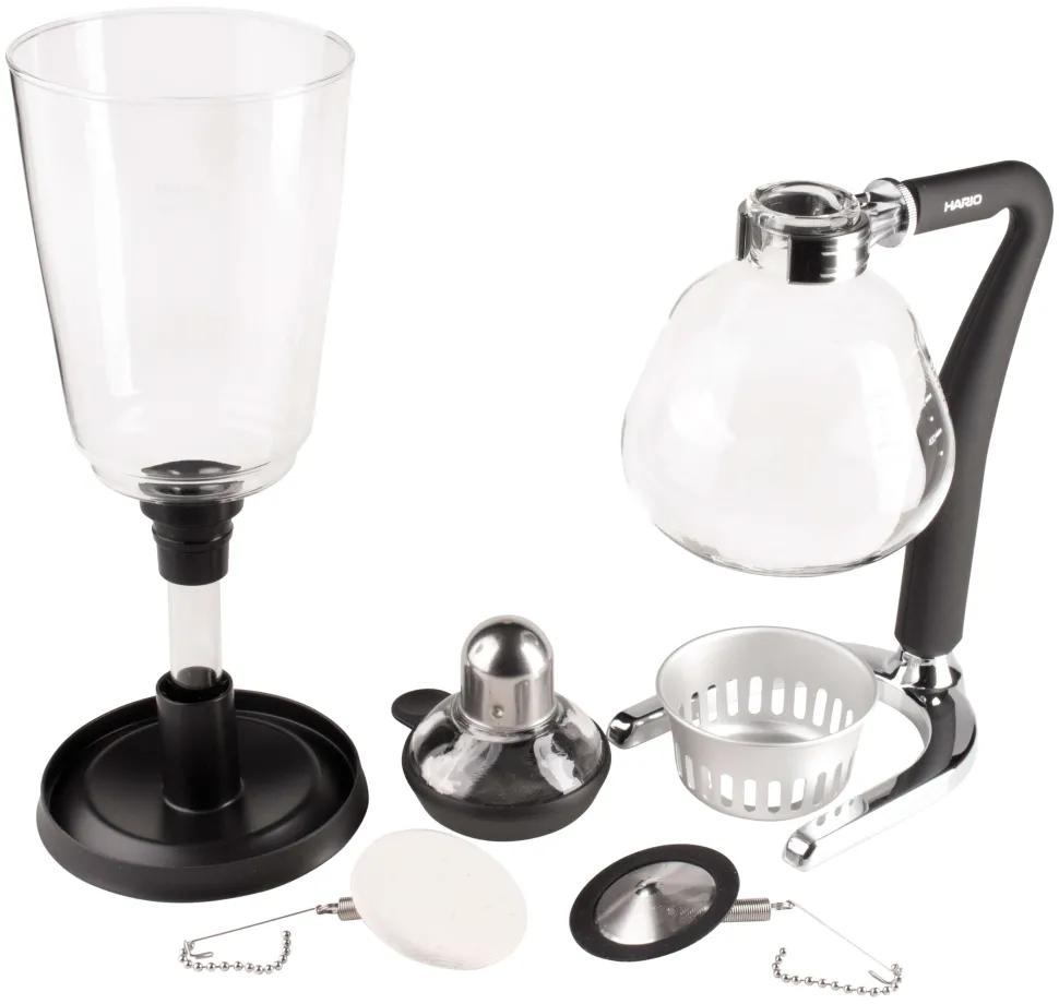 Der Hario Kaffee Siphon „Next“ bietet Ihnen die Möglichkeit neben frischem und aromatischen Kaffee auch leckere Tees sowie heiße Infusionen und Cocktails zuzubereiten. Sie können darauf abgestimmt zwischen einem Stoff- und Metallfilter wählen. Der Kaffee Siphon wurde bereits in den 1830er Jahre entwickelt, erlebt seit einigen Jahren ein kleines Revival und ist aus vielen kleinen Cafés nicht mehr wegzudenken. Aus vorher genannten Verwendungsmöglichkeiten kommt der Siphon nun aber auch vermehrt in Bars zum Einsatz.
