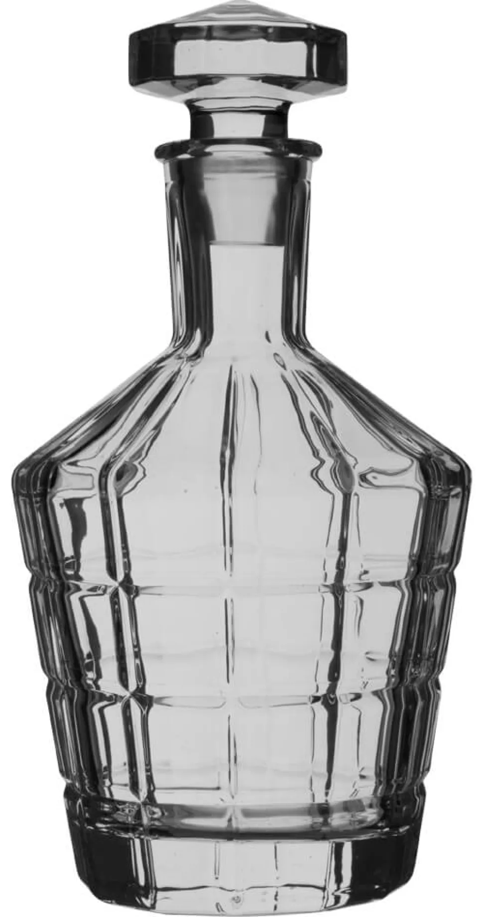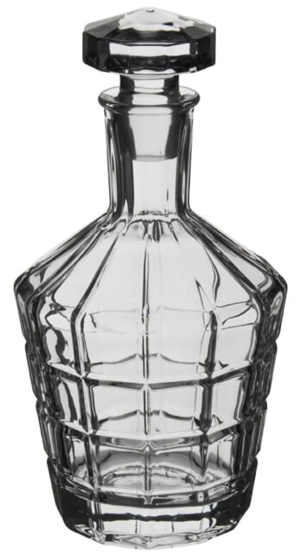 Die Karaffe setzt sich aus dem Glasbehälter und einem passenden Stopfen zusammen. Sie ruht auf einem leicht nach innen gewölbten Boden, der einen festen Stand garantiert. Die einzigartige Form lässt diesen Dekanter fantastisch aussehen und Ihre edlen Brände komplementieren.