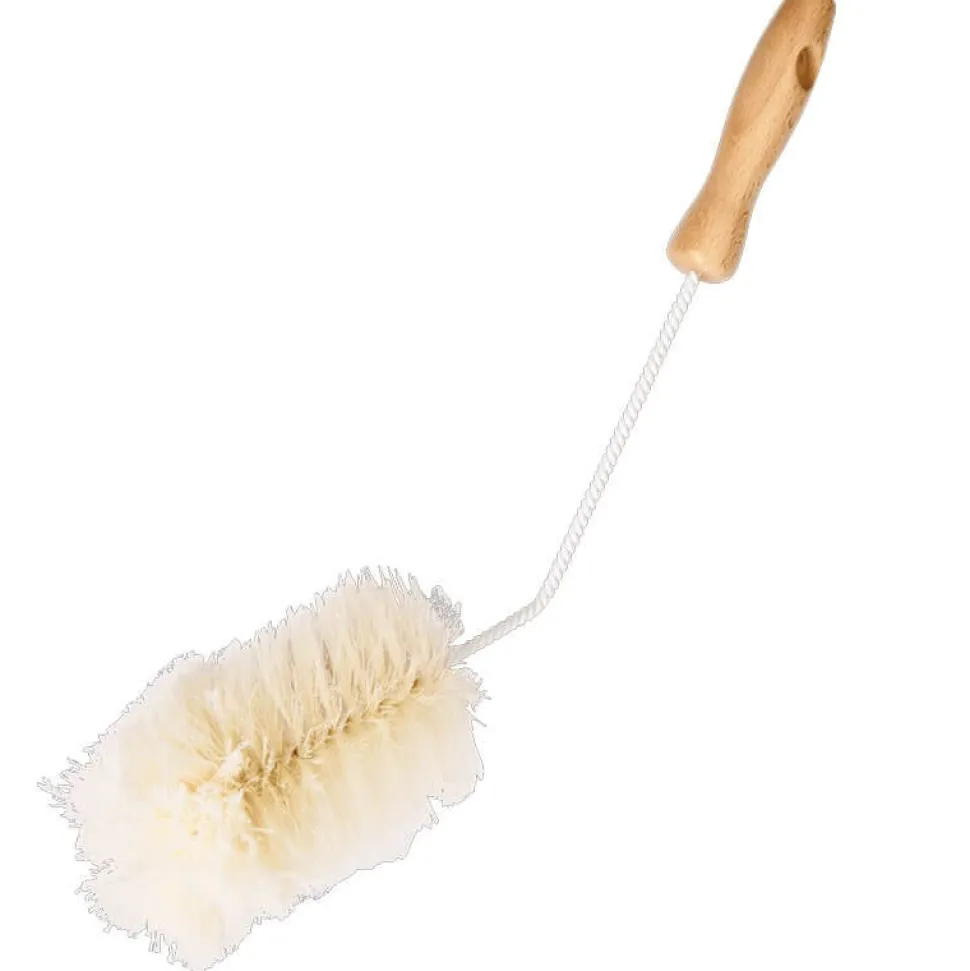 Der Holzgriff ist mit einem Loch versehen und bietet Ihnen eine ergonomische Form. Des weiteren ist das Drahtgestell gedreht, wodurch Sie Stabilität erhalten. Zudem ist das Gestell abgeknickt. Die Bürsten am Kopf bestehen im unteren Teil aus Kunststoff und im oberen Teil aus Baumwolle.
