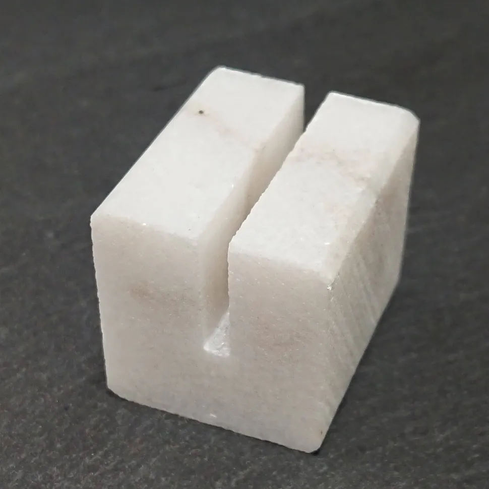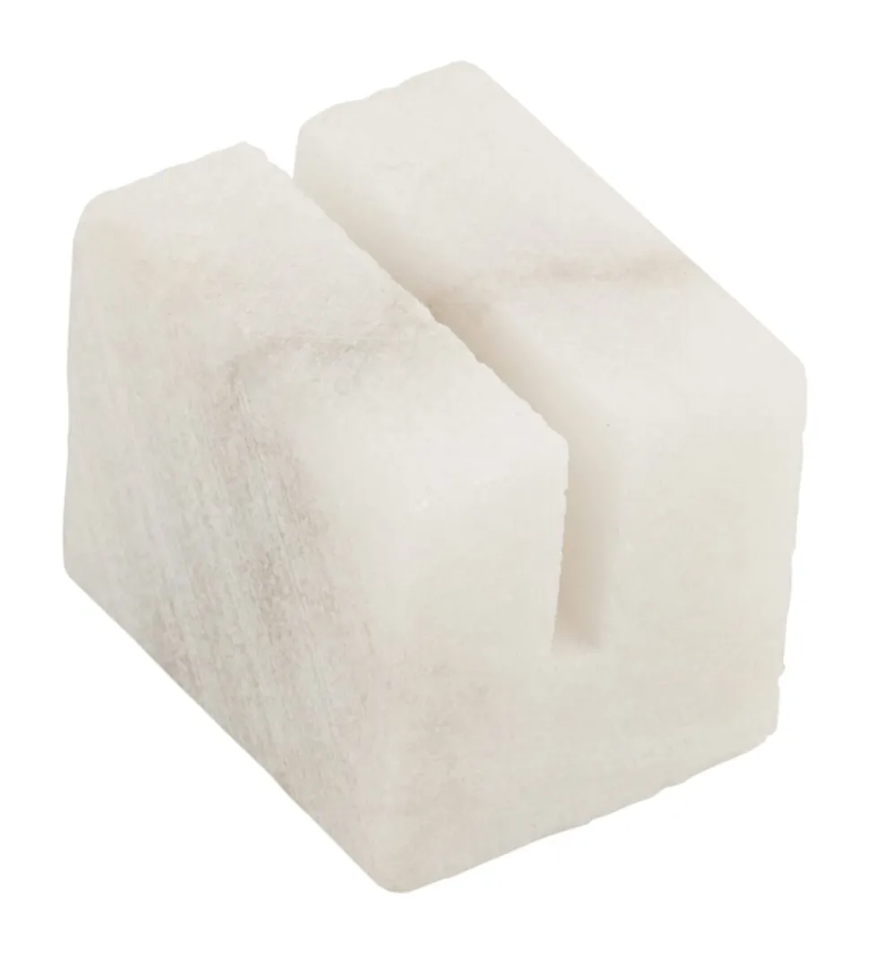 Nutzen Sie den weißen Marmorblock für die Speisenkennzeichnung am Büffet oder als Menükartenhalter auf dem Gästetisch.