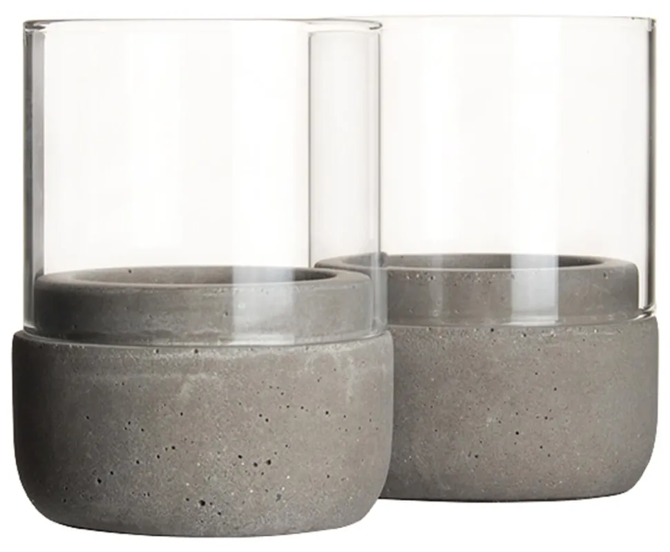 Produktdaten für Kerzenhalter / Windlicht, Beton und Glas – 8x6cm (2 Stk.)