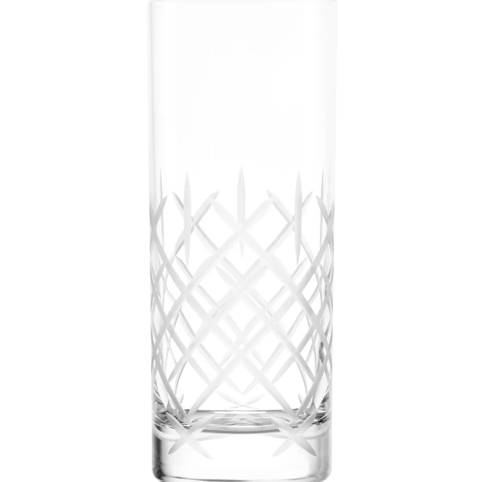 Das Barglas hat eine gleichmäßig-zylindrische Statur mit einem konstanten Durchmesser von 6,6cm. Die untere Hälfte ist mit einem geometrischen Schliff geschmückt. Das Muster namens „Club“ besteht aus diagonalen und geraden Linien mit matter Oberfläche, die gemeinsam ein Rautenmuster formen. Dieses Muster strahlt einen gewissen Retro-Charme und zugleich moderne Hochwertigkeit aus, sodass es den Flair von New Yorker Clubs und Bars stilecht repräsentiert. Zudem sorgt der Schliff für Grifffestigkeit und ermöglicht als tolles Gimmick ästhetische Lichtspiele zwischen Glasinhalt und atmosphärischem Bar- oder Club-Licht.