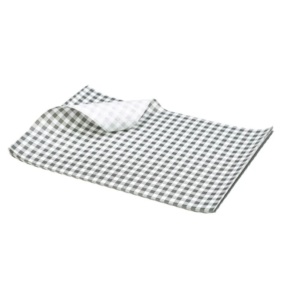 Produktdaten für Pergamentpapier / Fettdichtes Papier, Karomuster schwarz – 25x20cm (1000 Stk.)