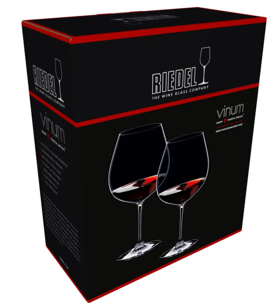 In der Vinum-Serie hat Riedel rebsortenspezifische Gläser für zahlreiche verschiedene Weinsorten eingeführt. Dieses Pinot Noir Glas spezialisiert sich dabei eher auf Pinot Noir aus europäischen Anbaugebieten. Dieser hat andere Eigenschaften als zum Beispiel australischer Pinot Noir, für den das Neue Welt Pinot Noir Glas der Vinum-Reihe vorgesehen ist.