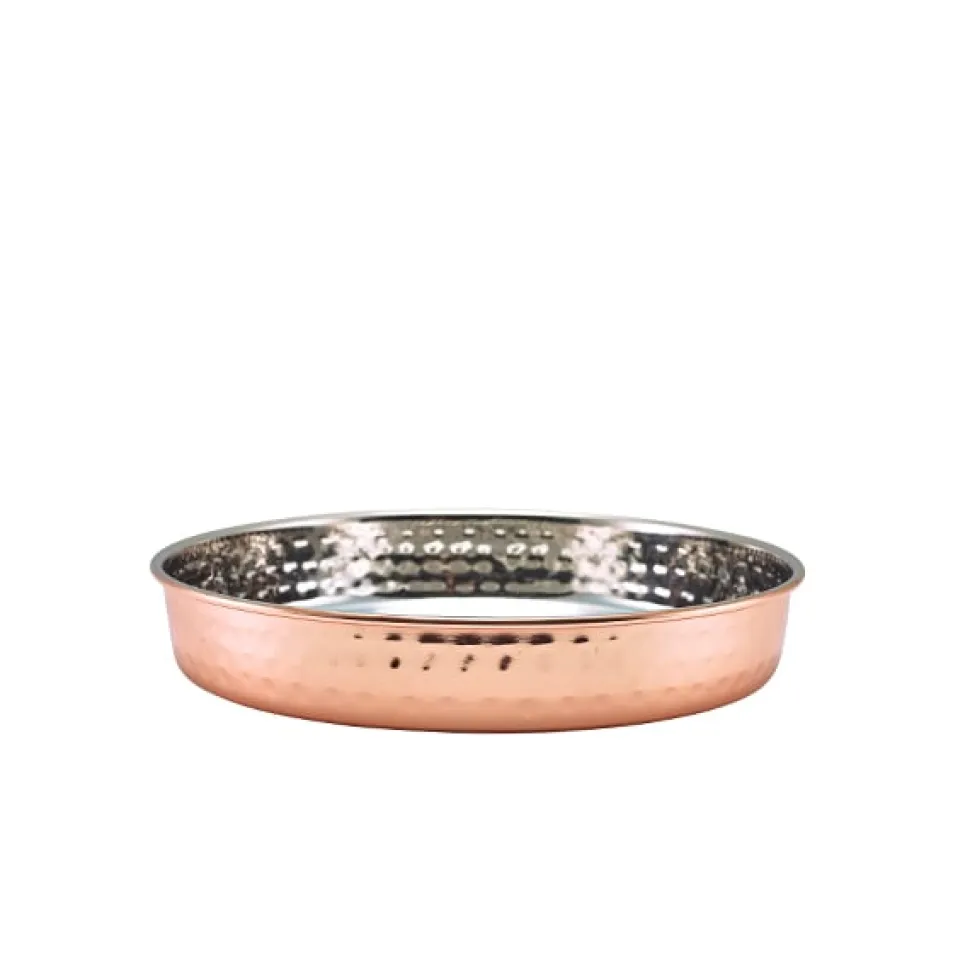 Produktdaten für Präsentationsteller, Edelstahl gehämmert, kupferfarben – 20x3cm