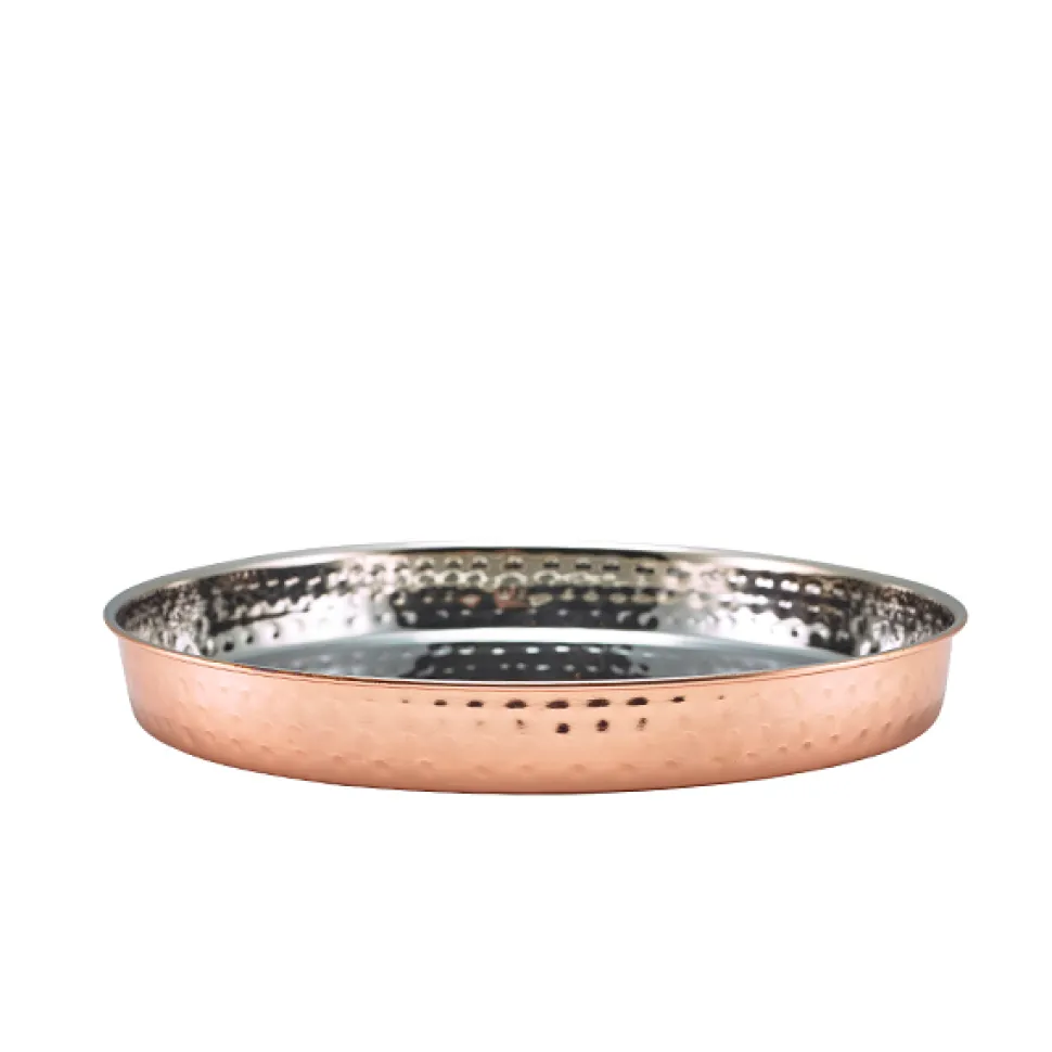 Produktdaten für Präsentationsteller, Edelstahl gehämmert, kupferfarben – 25x3cm
