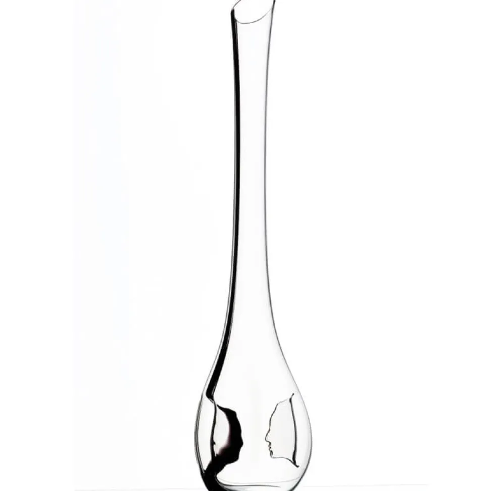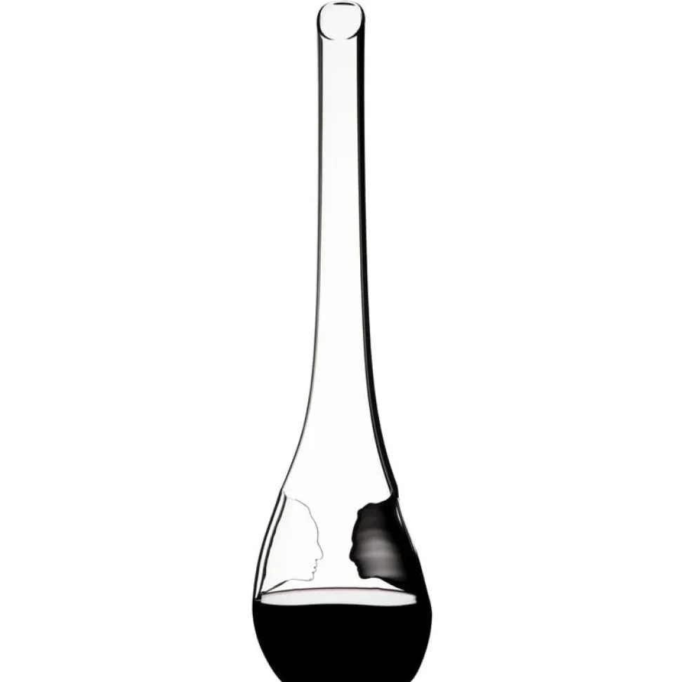Gedacht ist der Riedel Black Tie Face To Face Dekanter für 0,75l Wein. Bei dieser Füllmenge befindet sich die Oberfläche kurz unter den Silhouetten-Gesichtern, was die Dekoration besonders gut zur Geltung bringt. Selbstverständlich werden auch Ihre Weine bestens in Szene gesetzt. Dafür sorgt zum einen das hochwertige, brillante Kristallglas von Riedel. Des Weiteren sorgt der lange Hals des Dekanters dafür, dass Sie junge Weine gut schwenken und intensiv belüften können, um die kräftigen Tannine zu mildern.