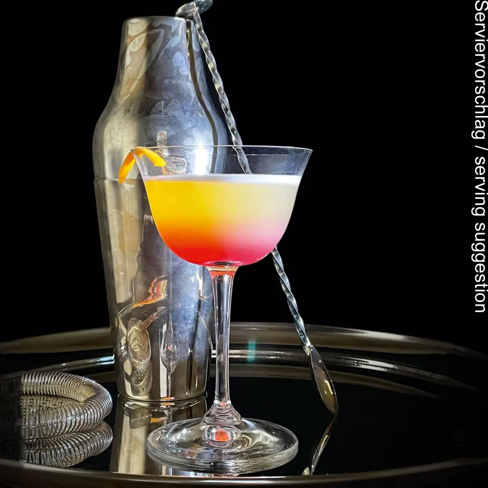 Das auffälligste an diesem Bar-Glas ist der glockenförmige Kelch, der eine nach außen gewölbte Lippe, sowie einen tiefliegenden Bauch besitzt. Die Lippe sorgt dafür, dass die kräftigen Aromen direkt auf die Zungenspitze treffen, für den intensivsten Geschmack. Der dünnwandige Kelch sitzt auf einem schlanken Stiel, der wiederum auf einem sehr weiten, hohl stehenden Fuß thront. So ergibt sich eine Gesamtgröße von 15,8cm.