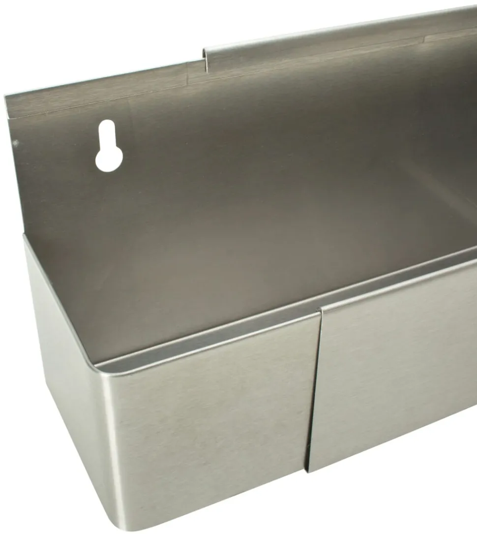 Das Speedrack wird mit 2-3 Schrauben an der Wand befestigt (je nach gewählter Breite; Befestigungsmaterial nicht enthalten). Wählen Sie dabei selbst, wie breit das Fach sein soll, indem Sie die drei Bestandteile ineinander verschieben. In dieser Version ist eine Breite zwischen 82cm und 106cm vorgesehen.