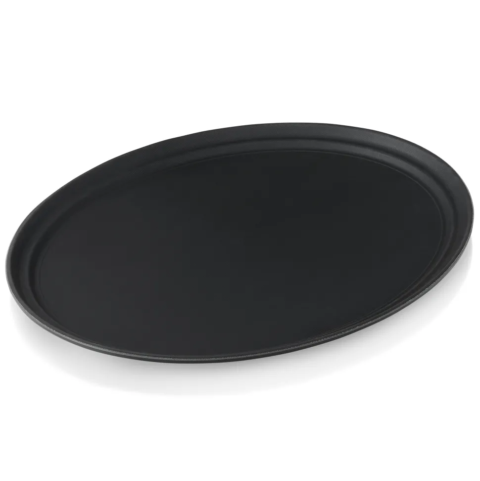 Produktdaten für Tablett oval, rutschfest, Polypropylen schwarz – 63x52x3cm