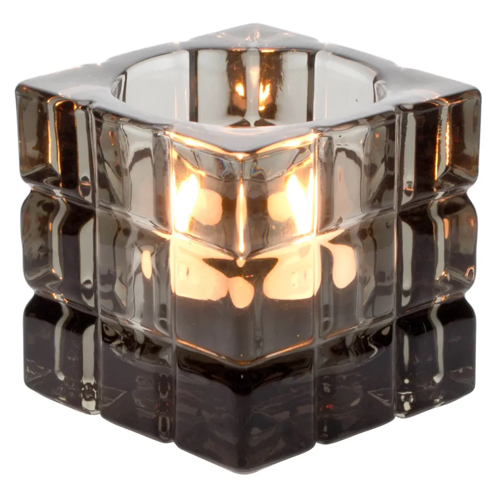 Produktdaten für Teelichthalter, Würfelmuster eckig, grau – 6,2×6,2×6,2cm