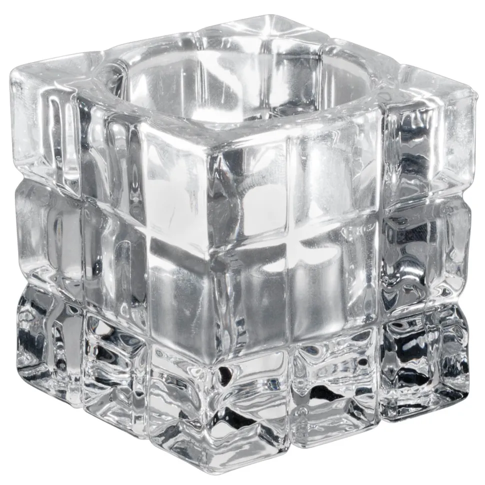 Produktdaten für Teelichthalter Würfelmuster eckig, transparent – 6,2×6,2×6,2cm