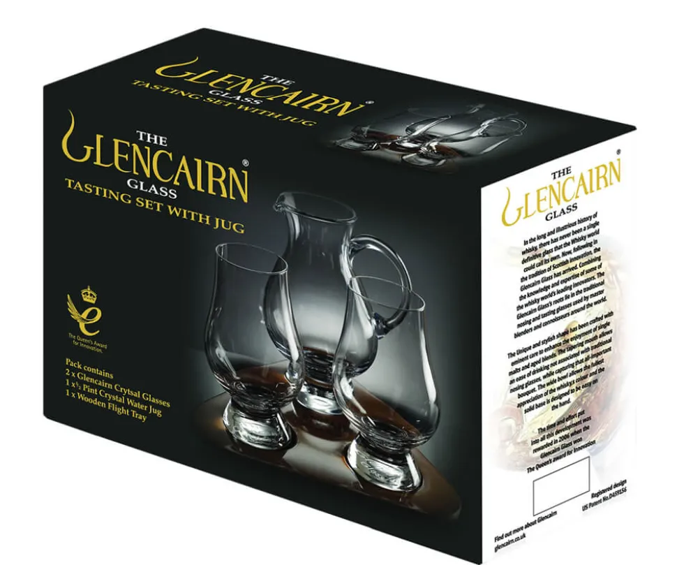 Produktdaten für The Glencairn Whisky Tasting Set mit 2 Gläsern, Wasserkrug und Holztablett
