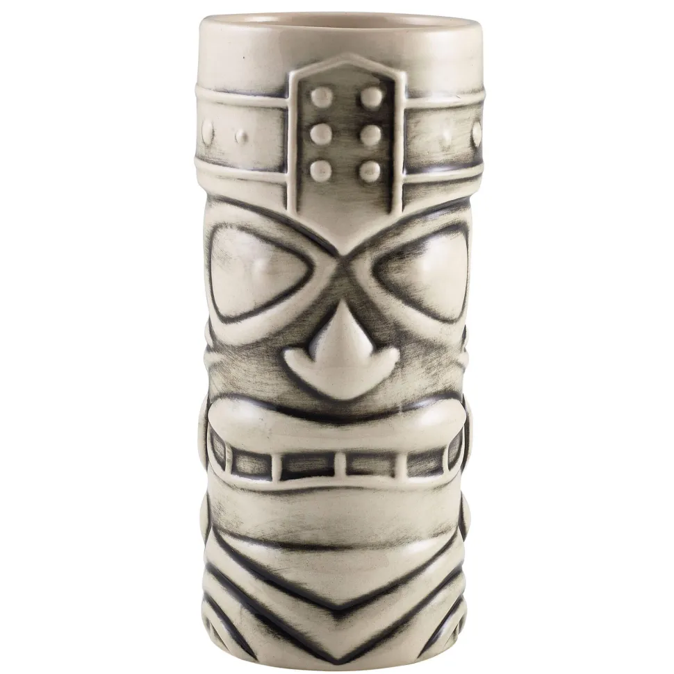 Spinnen Sie die Geschichte ruhig weiter – oder machen Sie eine Pause und mixen Sie sich einen Tikicocktail, den Sie anschließend aus diesem Keramikbecher genießen können. Die weiße Farbe mit den dunklen Schatten erinnert an einen Totenschädel und lässt den Becher dennoch sehr lebendig erscheinen.