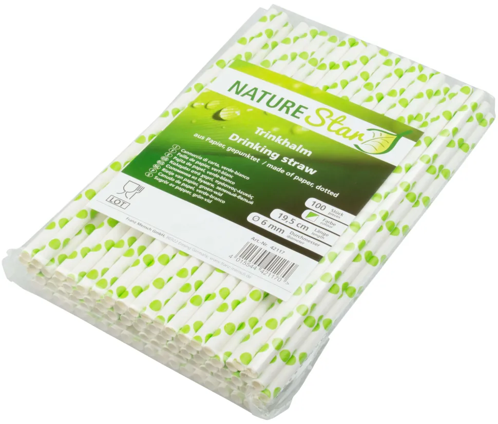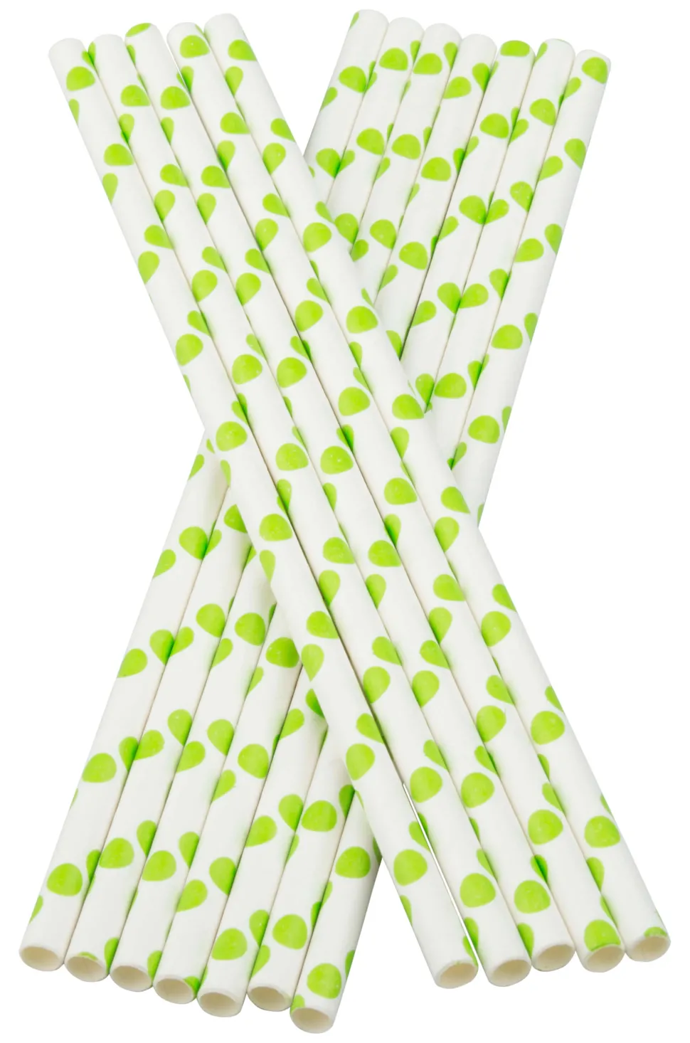 Produktdaten für Trinkhalme, Papier (6x195mm), Punkte (grün-weiß) – 100 Stk.