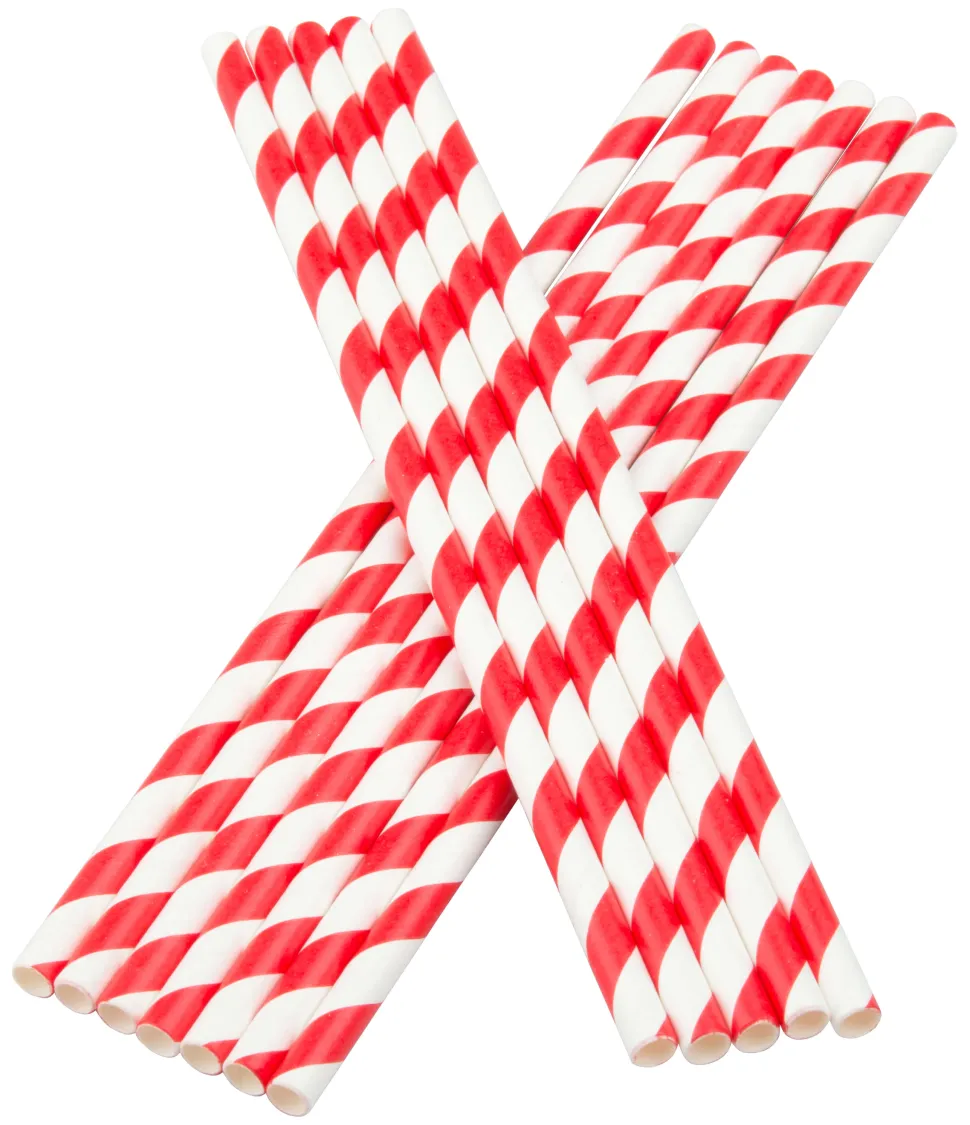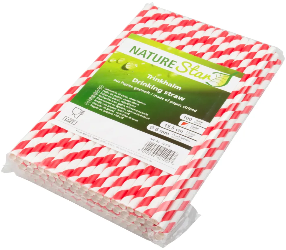 Produktdaten für Trinkhalme, Papier (6x195mm) – rot-weiß gestreift (100 Stk.)